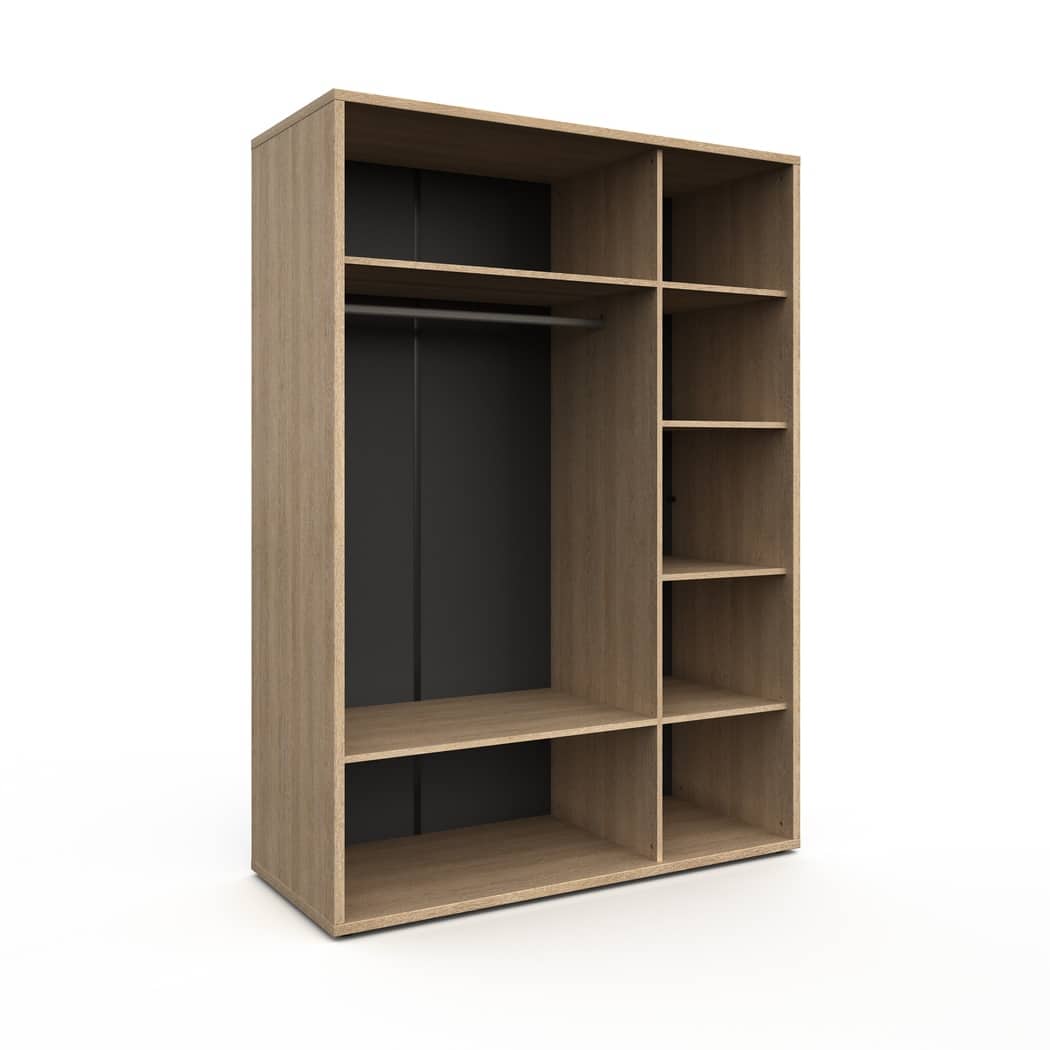 De combinatie van hang- en legplanken zorgt voor een overzichtelijke indeling.