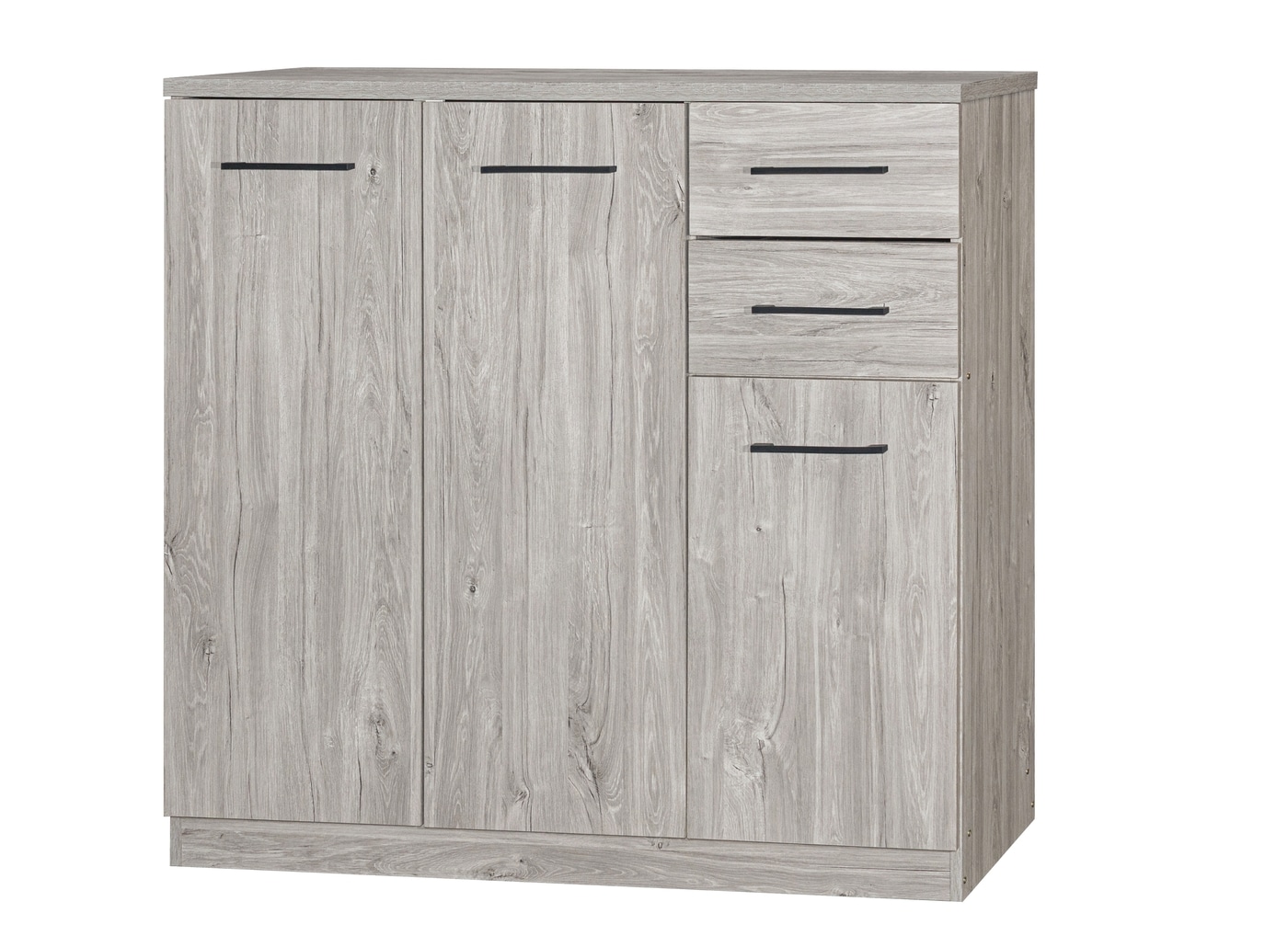 Deze stijlvolle commode in New Grey Oak combineert moderne uitstraling met functioneel design.