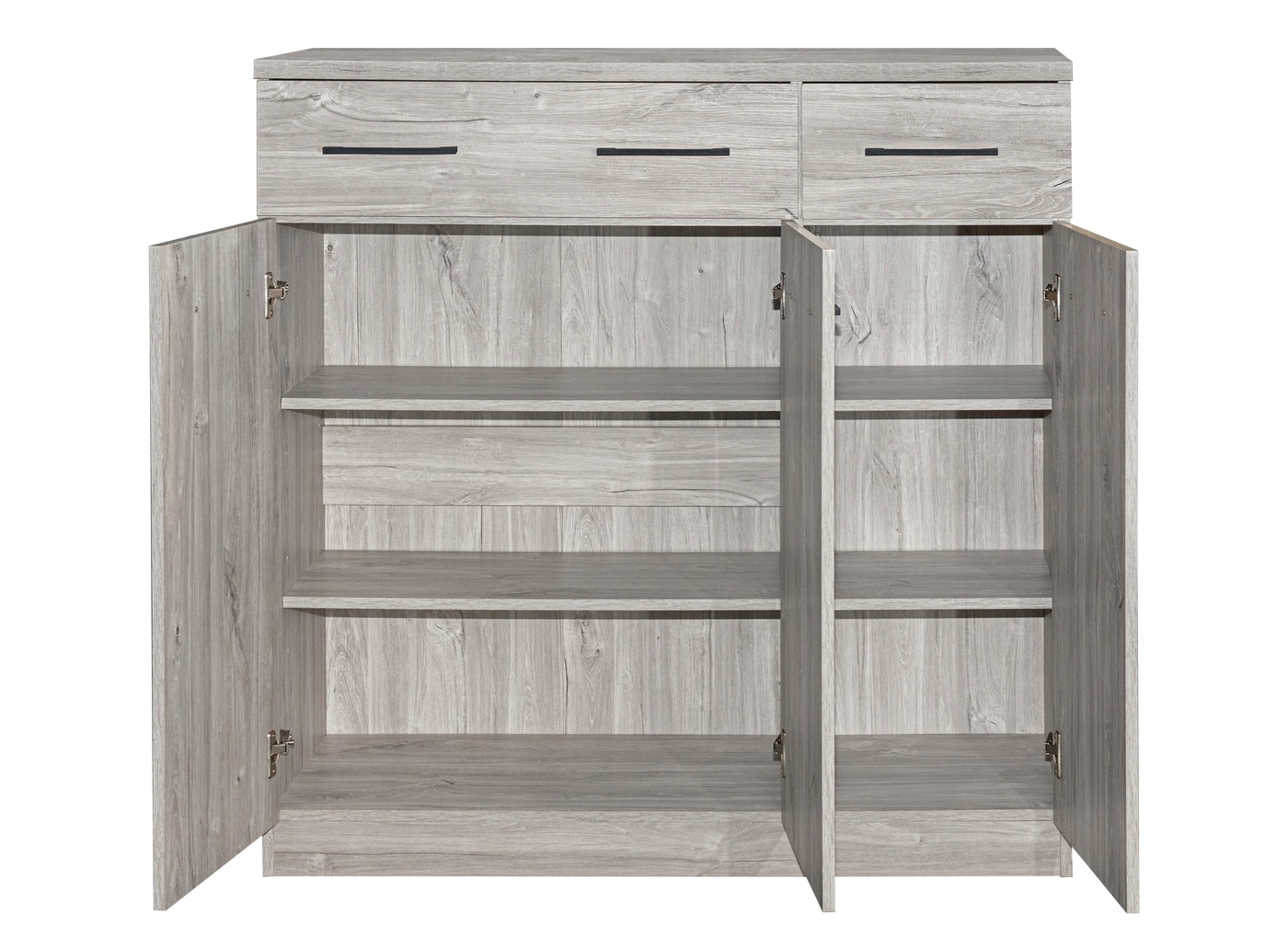 Strak, praktisch en elegant, deze drie-deurs commode met bijpassende drie lades biedt een zee aan opbergruimte.