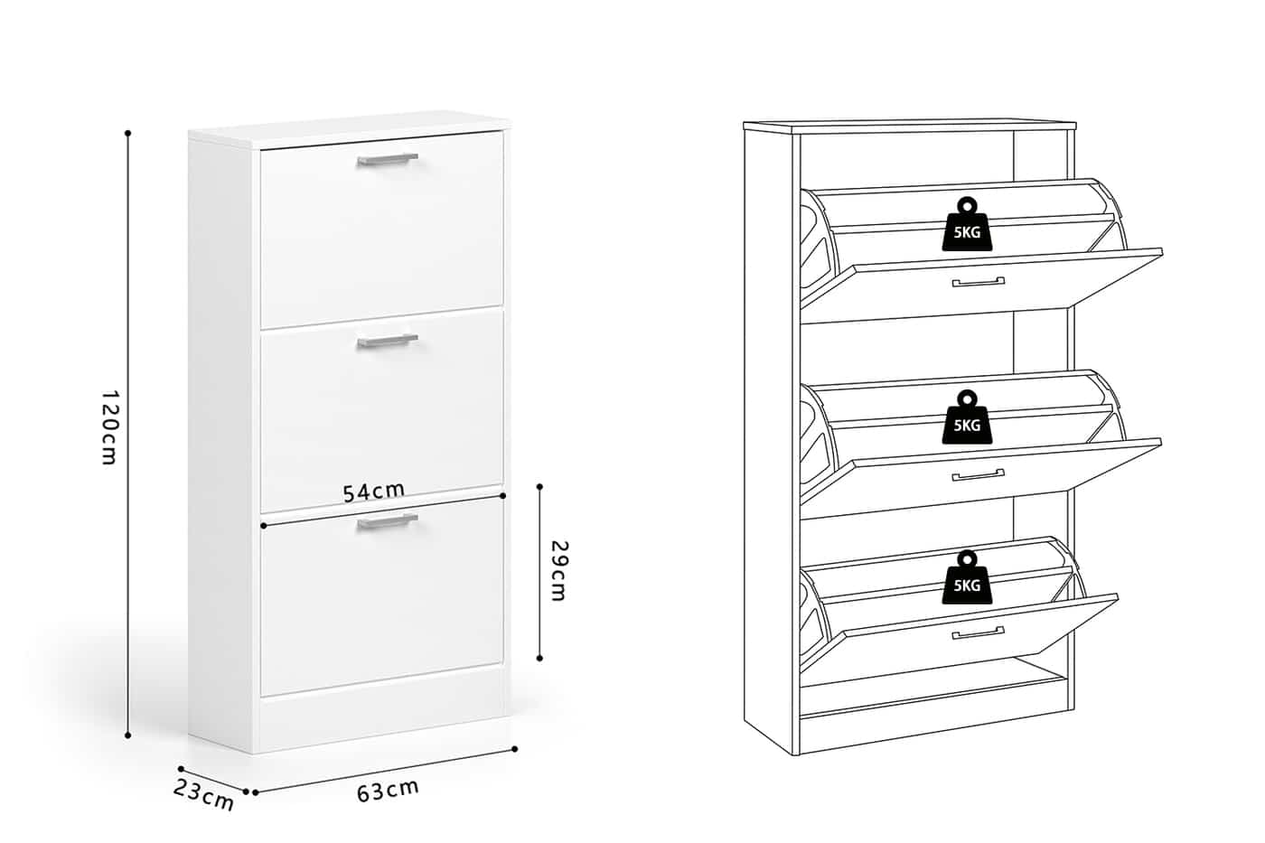 Schoenkast ‘Carini’ 3 laden Wit