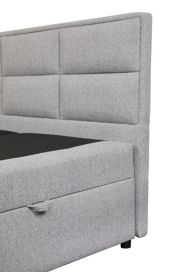 Onder de boxspring schuilt een ruime opbergbox, ideaal voor extra dekens of seizoensgebonden linnengoed.