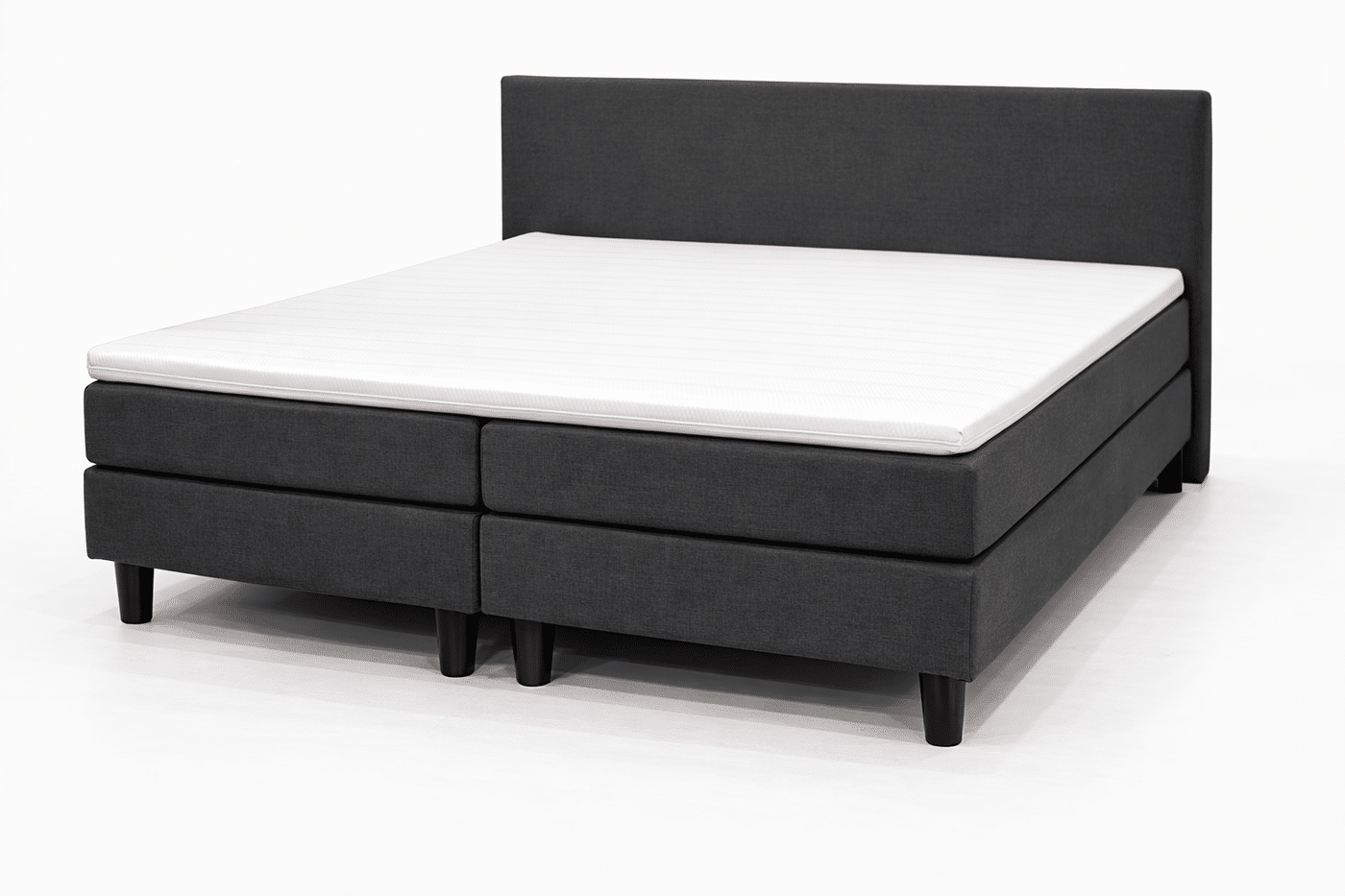 De boxspring wordt compleet geleverd met een gestoffeerde matras en een topper in HR-schuim.