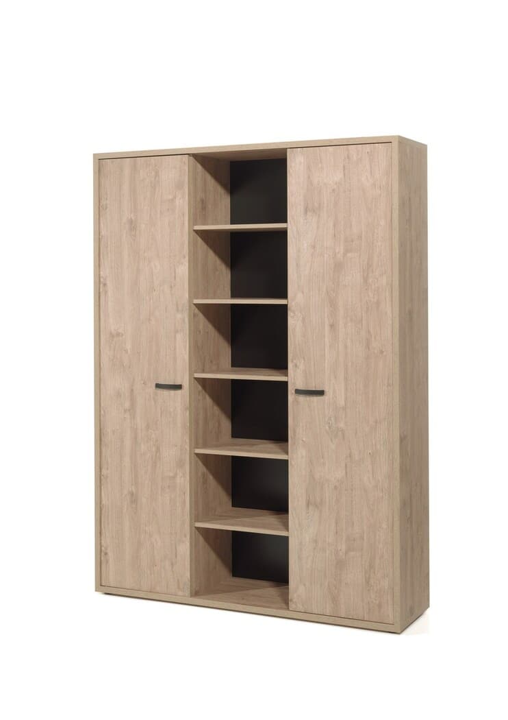 Deze hoge dossierkast heeft 2 deuren en 6 open vakken.