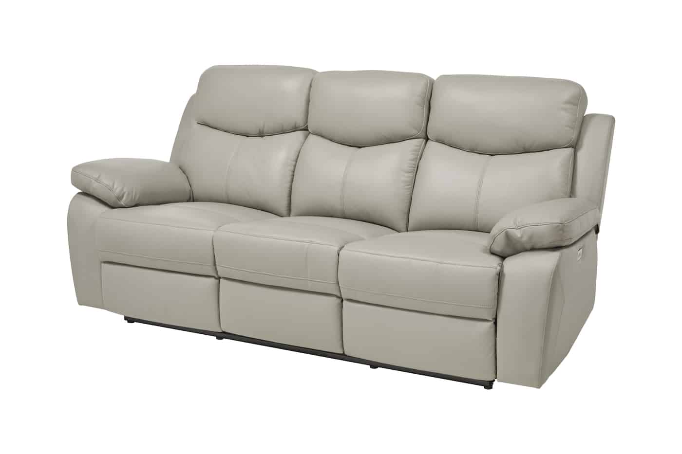 Deze ruime zetel in stijlvolle Lederlook Light Grey is uitgerust met twee geïntegreerde elektrische relaxen, waarmee je moeiteloos achterover leunt voor optimaal zit- en ligcomfort.