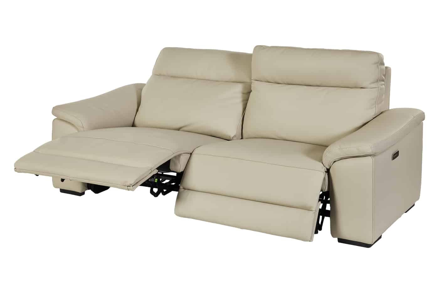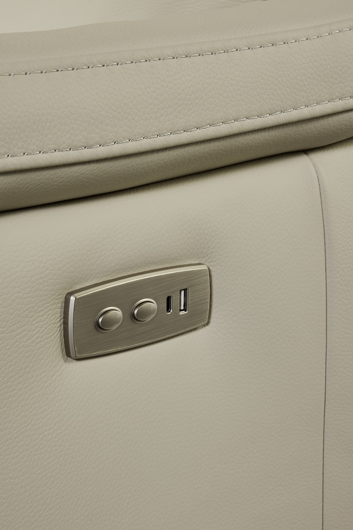 Deze elegante zetel in luxueus Leder Ecru is uitgerust met twee elektrische relaxen, waarmee je moeiteloos geniet van ultiem comfort na een lange dag.