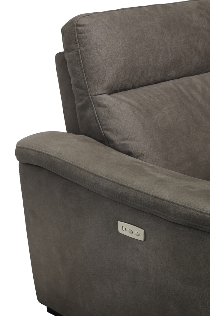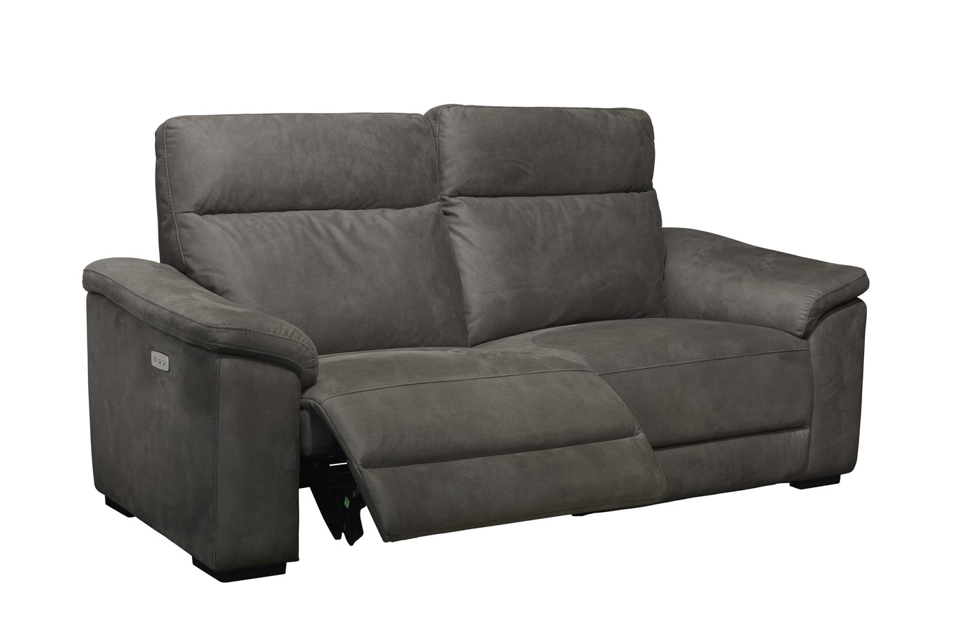 Deze elegante zetel in zachte stof Dark Grey is uitgerust met twee elektrische relaxen, waarmee je moeiteloos geniet van ultiem comfort na een lange dag.