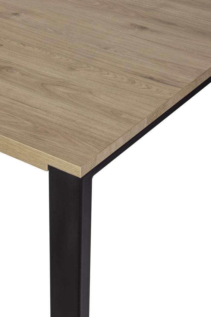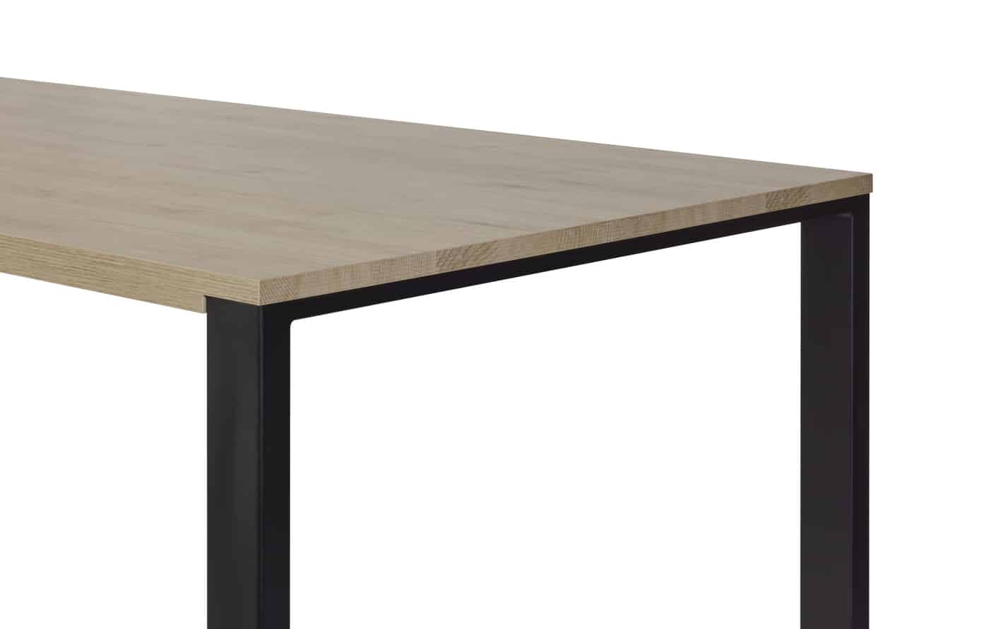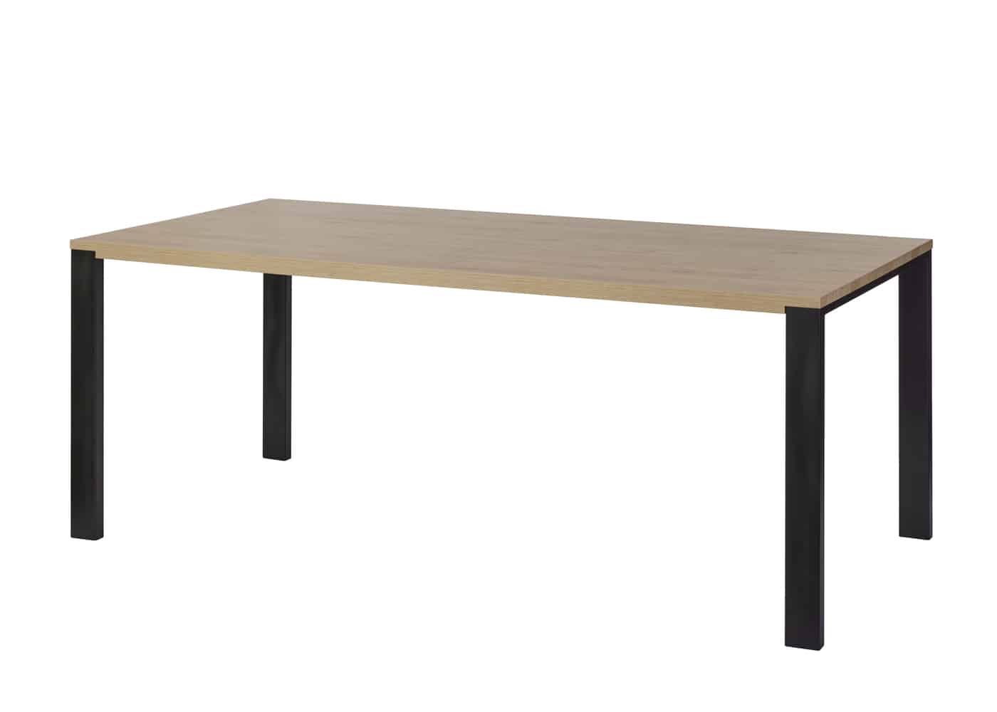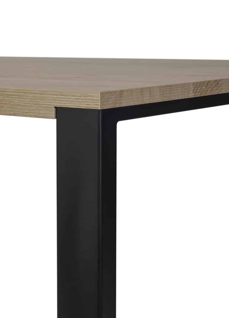De strakke, zwarte metalen poten geven de tafel een eigentijdse en industriële twist, wat zorgt voor een krachtig contrast en extra karakter.